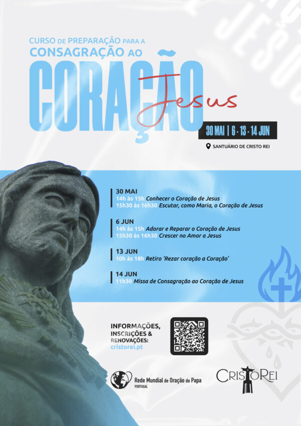 O Santuário de Cristo Rei, em parceria com a Rede Mundial de Oração do Papa, promove um Curso de Preparação para a Consagração ao Coração de Jesus, que decorre entre os dias 30 de maio e 14 de junho.