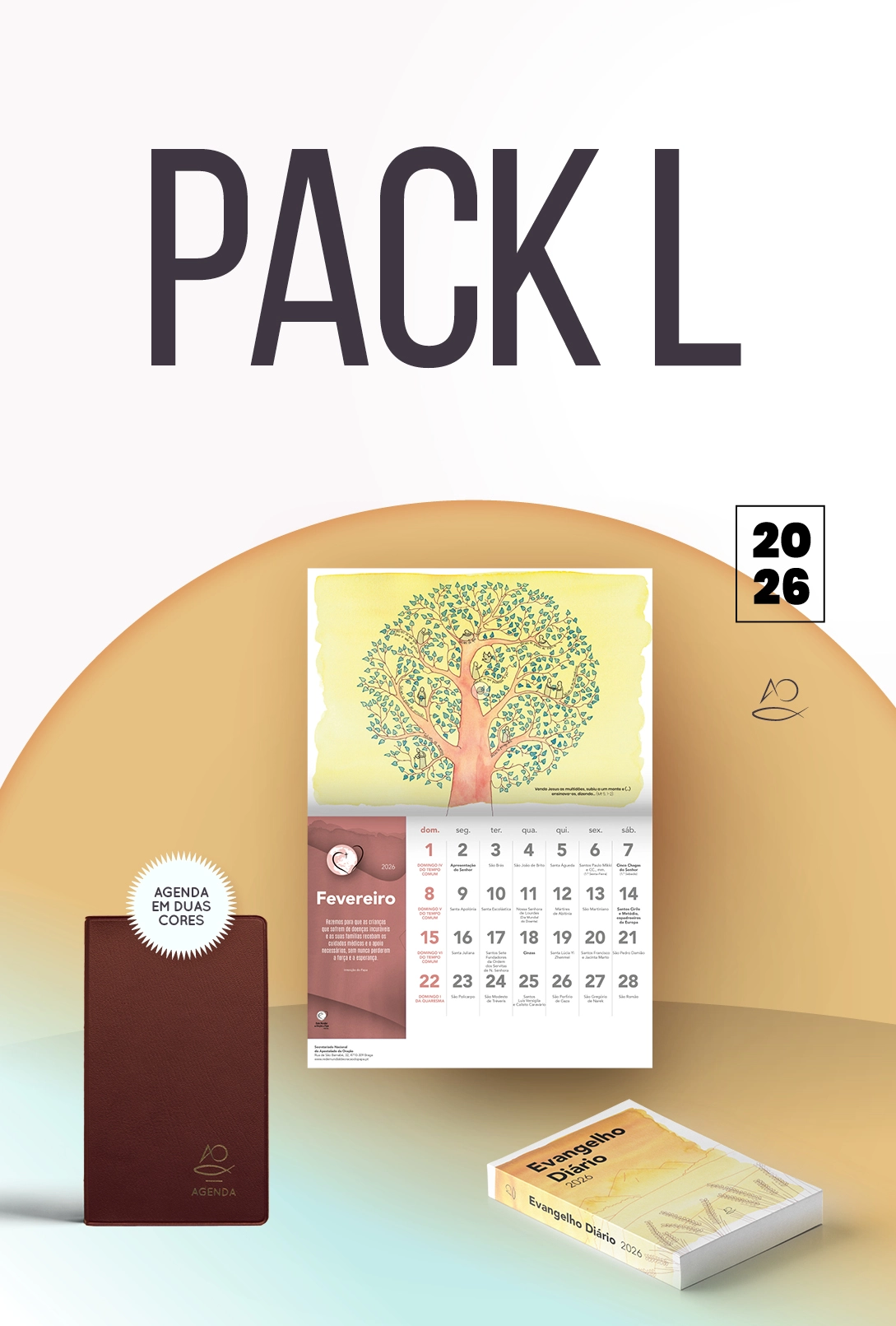Organize o ano de 2026 com o Apostolado da Oração – Rede Mundial de Oração do Papa, adquirindo o “Pack L”, que inclui o Evangelho Diário, o Calendário de parede e a Agenda Litúrgica.